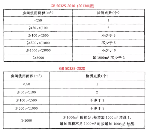 (4)對室內污染物濃度檢測點數(shù)設置進行了調整。本標準中調整了使用面積大于1000平方米的房間檢測點數(shù)設置。